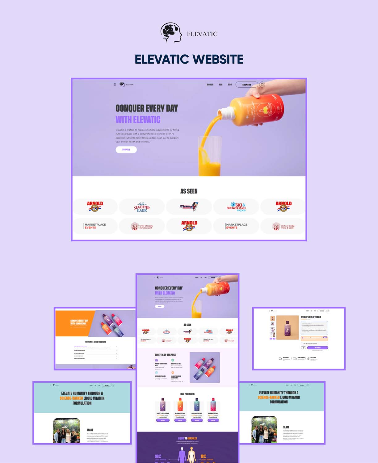 The final store delivers a clean and professional e-commerce experience that clearly communicates the value of Elevatic’s 75-nutrient formula.